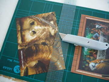 Corte la población cubierta ha elegido un poco más grande que el papel de 1/4 de pulgada hacia arriba y hacia abajo y 3/16 de pulgada de ancho