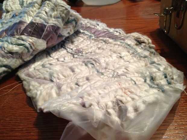 A partir de un extremo, en un patrón de zig-zag grande, coser toda la longitud de la bufanda, asegúrese de ir todo el camino hasta los bordes. Si hay un pedazo del borde que parece menos seguro, intente coser durante este paso. Repetir esto de cuatro a seis veces.