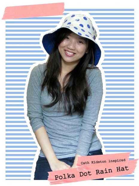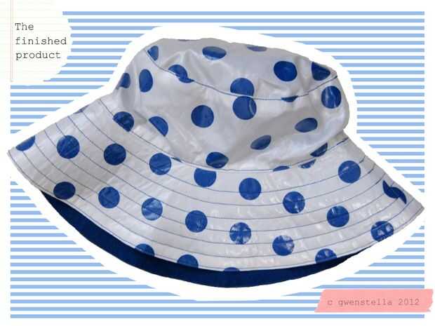 soy un gran fan de los diseños de Cath Kidston y he realmente sido mirando el sombrero de lluvia punto de Cath Kidston para varios meses, siempre 'um-ing' y 'ah-ing' sobre si realmente debo comprar el sombrero. En primer lugar, ya tengo muchos sombreros. En segundo lugar, tengo un sombrero que lo thrifted patrón en mi escondite de patrón hace un tiempo y yo sabía que podía hacer uno similar si tuviera la tela derecha. Luego, llegó el día cuando encontré un remanente de tejido de topos de PVC en el depósito de remanente en centro de atención. Fue lo suficiente como para hacer un sombrero! Incluso no recuerdo el costo. Creo que era probablemente menos de 2 dólares! Suerte ~