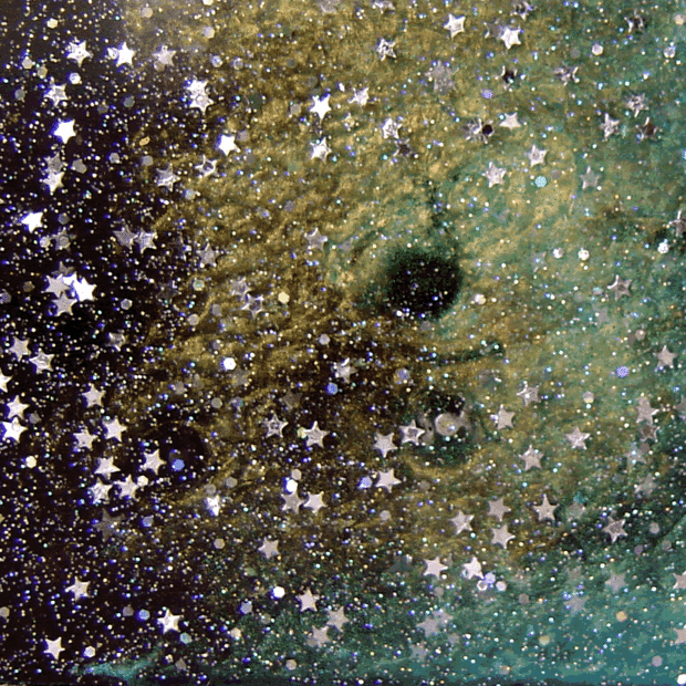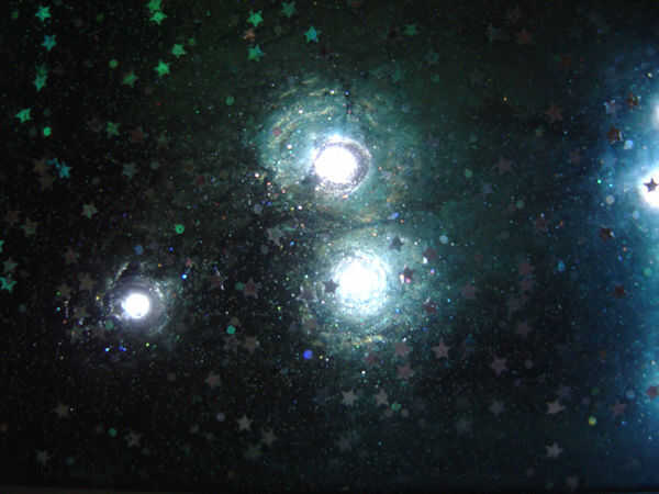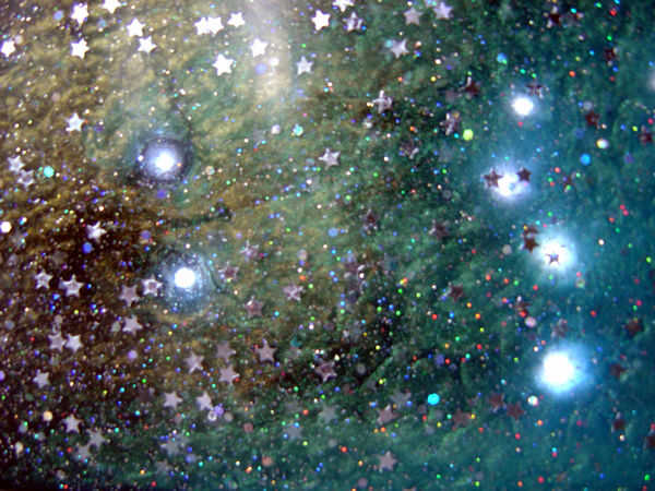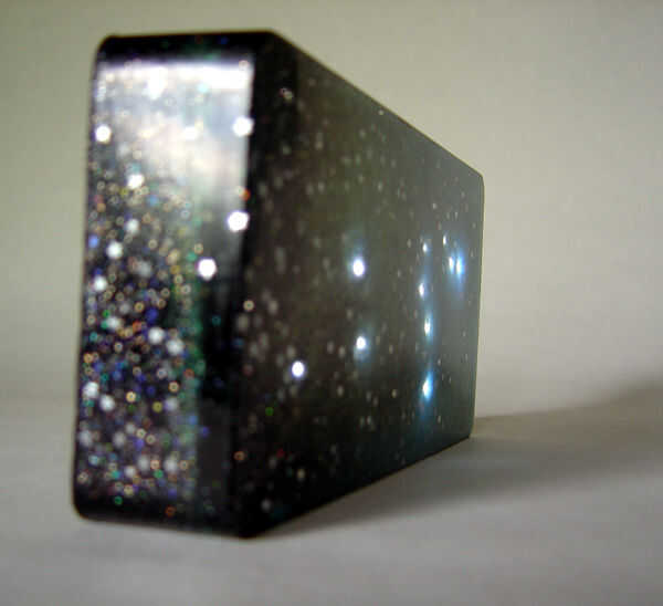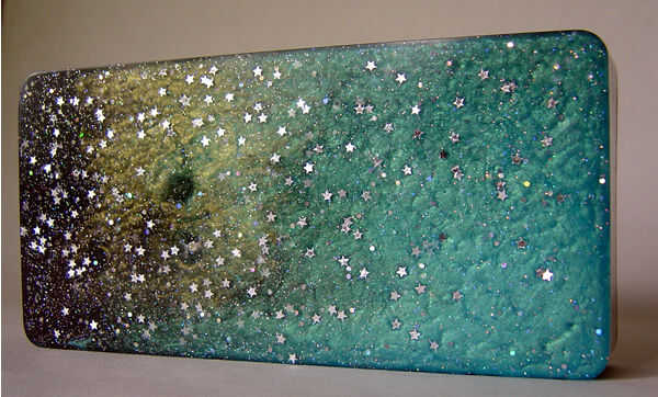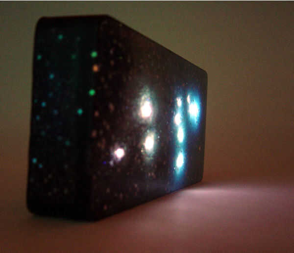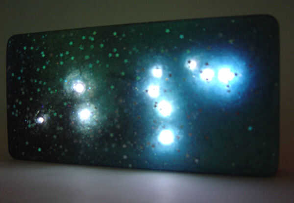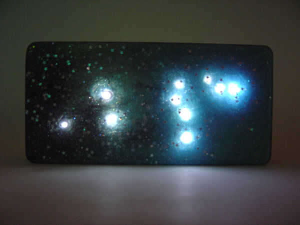 Una otra idea he venido para arriba con publicar esto es agregar un polvo 'glow in the dark' con el polvo cósmico. Esto permitiría que emiten una suave luz todo el tiempo, incluso cuando está apagada. No he probado, pero tal vez algo como esto: