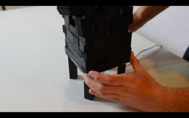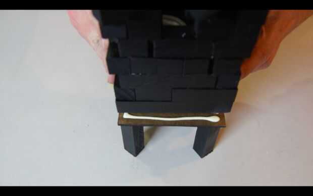 A continuación esbozar la base con pegamento y bajar la estructura de bloque sobre ella y alrededor de la bombilla CFL. Aplasta todo un poco, limpie el pegamento y el interruptor! Enfermo de la espalda y amarla.