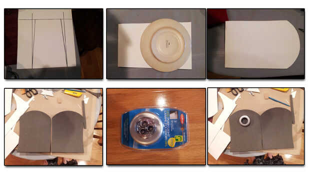 Tome sus medidas y extraer en un pedazo de espuma de artesanía (puede utilizar papel si lo prefiere; Yo simplemente les resulta más fácil mis patrones de corte con un cuchillo del exacto si mi pieza de referencia está hecha de espuma de artesanía). En la parte superior de su patrón, ponga un recipiente o plato y trazar la curva por lo que alinea con las esquinas superiores de su patrón actual. Cortar el patrón de la espuma del arte y entonces la traza a poco usando un cuchillo del exacto de la espuma de EVA (puede utilizar tijeras pero le dará limpiador de bordes con un cuchillo).