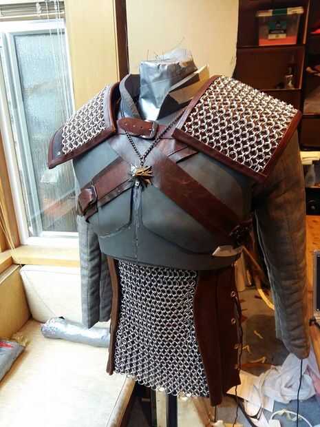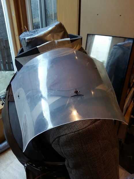 Ahora que usted ha hecho esto, puede empezar a asegurar los paneles de cuero/chainmail armadura abajo a sus pedazos del hombro de plexiglás.