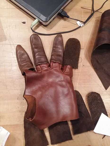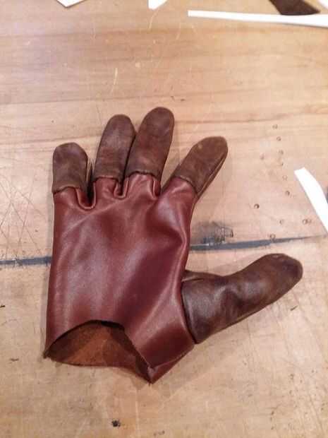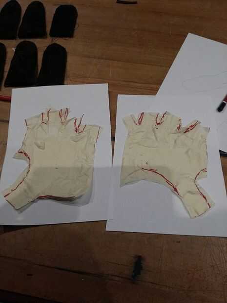 A continuación cortar las puntas de los dedos y coser a la palma de la mano.