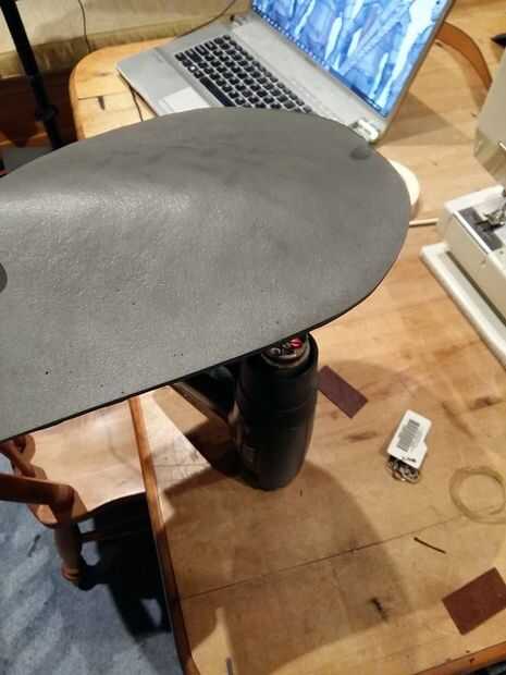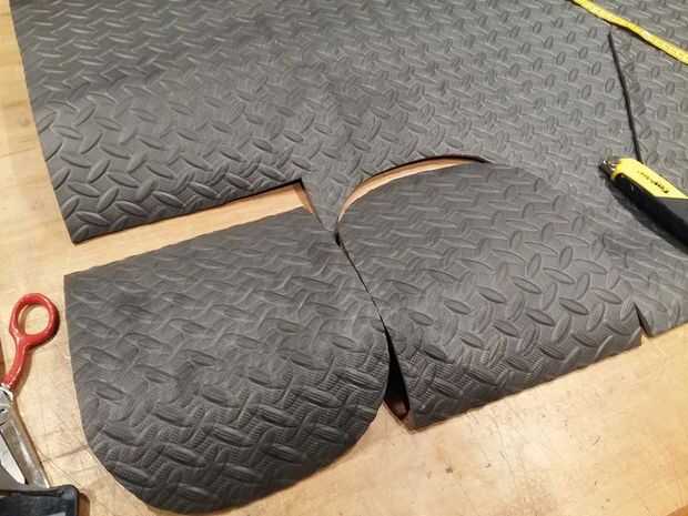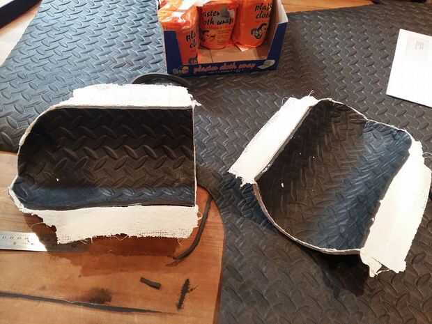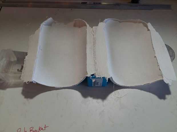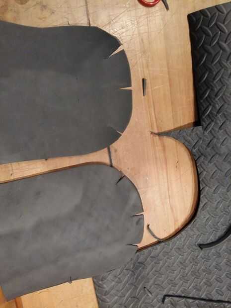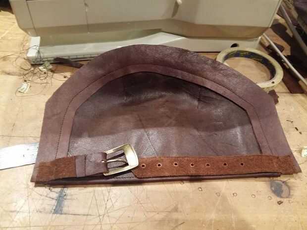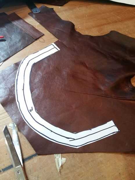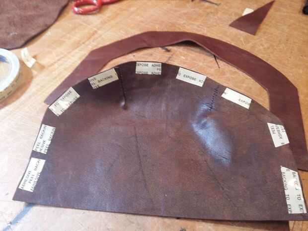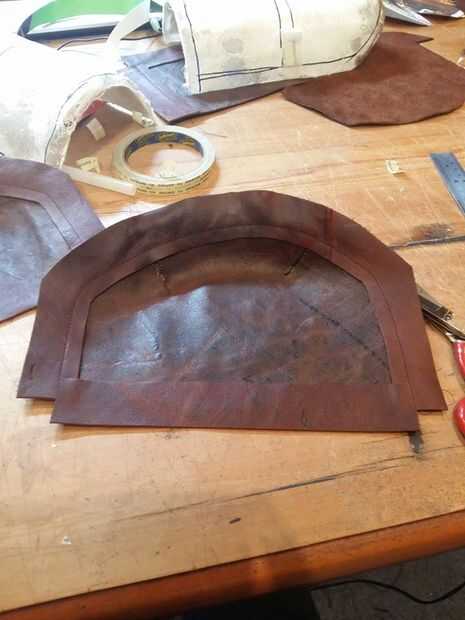 Después de quitar la fibra de vidrio del molde de yeso, limpieza y corte hacia abajo, ahora era momento de empezar a elaborar los paneles de cuero de la parte superior. Después de grabar algunos patrón de papel a la parte superior, corte a la medida, añadiendo líneas de detalle, y hacer los márgenes, era el momento de corte del cuero.