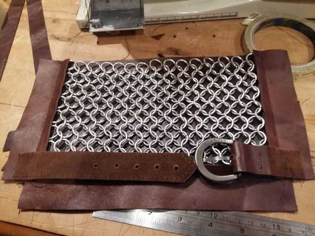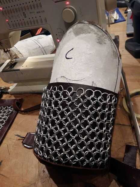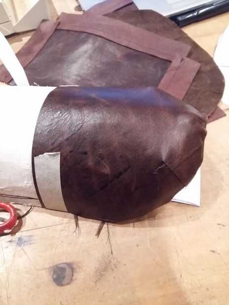 Generalmente el cuero se estiró sobre la forma del hombro, pero como estoy amarrado por vez será cubierto por cota de malla (más fácil hecha antes de pegar), era más fácil simplemente cortar los bordes de la piel y pegar hacia abajo.