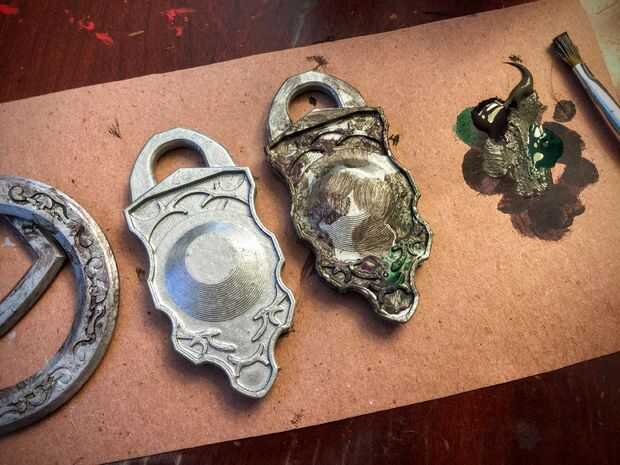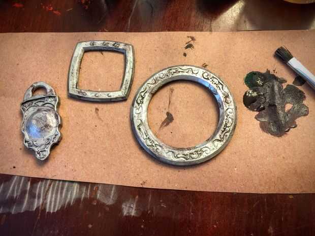 Erosión final y textura para que la banda se realizó frotando un poco de marrón, pero sobre todo de plata acrílico en él para que coincida con los brazales.