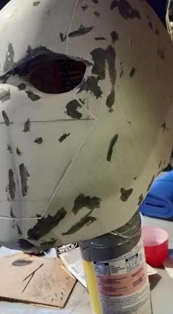 Pero puesto que va a haber burbujas de aire, es mejor comprar algún punto masilla para rellenar las pequeñas imperfecciones que aparecen a lo largo. He utilizado JB weld alrededor de los ojos (porque eran los más tediosos, y necesitaba que las zonas más difíciles. (mano arena alrededor de los ojos y tome su tiempo, la lijadora de Palma sólo destruiría este área)).