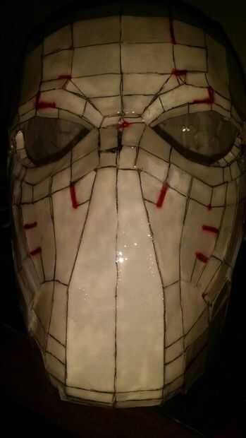 Como la mayoría pepakura que estoy seguro ya leíste, el siguiente paso es resina. He utilizado la resina de epoxy porque esto le da más tiempo para usar y no apesta la casa, pero tarda 24 horas por capa. Apliqué 2 capas a las capas exteriores y 2 en el interior, aunque tardó 4 días para hacerlo, ahora podría lanzar esta cosa por el suelo y quedaría sólido.
