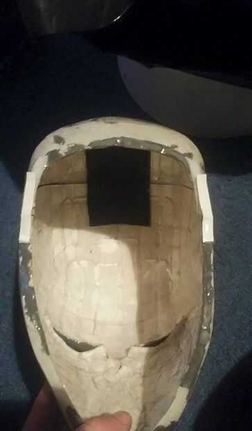 Para volver a colocar la campana, usé elástico que tiras hotglued a cada lado mientras que fueron siendo tirados firmemente, hacer que el producto terminado tenga un ajuste apretado. He utilizado dos tiras de velcro a los lados de la parte inferior donde se reunieron las dos mitades, que mantienen la campana todo juntos mientras que está en mi cabeza.