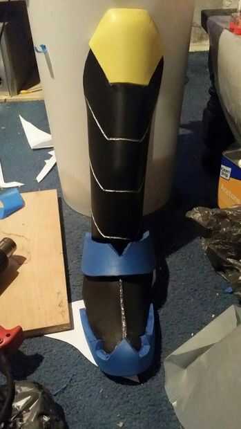 Para esta pieza, yo primero remontar mi tobillo sobre un pedazo grande de papel de cartel y había recortado hasta que encajarán bien. Coloca el papel sobre el tablero de la espuma de EVA, lo trazó y recortarlo. Una de las mejores cosas de la espuma de EVA es la facilidad de moldear con una pistola de calor. Cuando se calientan las piezas de espuma y dóblalo sobre ti tobillo como se refresca, conservará la forma que tienes en.