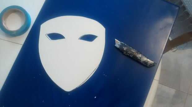 Después de transferir mi diseño en el plástico corte hacia fuera con mi cuchillo. No es tan difícil hacerlo pero puede tomar un poco de tiempo porque tienes que tener cuidado de no desviarse de la línea y arañar el plástico y tiene que ser hecho en múltiples pasadas en vez de simplemente cortar todo a la vez. Las fotos muestran dos versiones de la máscara que corte. Hay, por supuesto, otras maneras usted puede recortar esta demasiado. Si tuviera un cortador láser pude acaba de hacer el diseño como un archivo y podrían haber fácilmente todo hacia fuera sí mismo. Hubiera sido mucho más preciso también!.