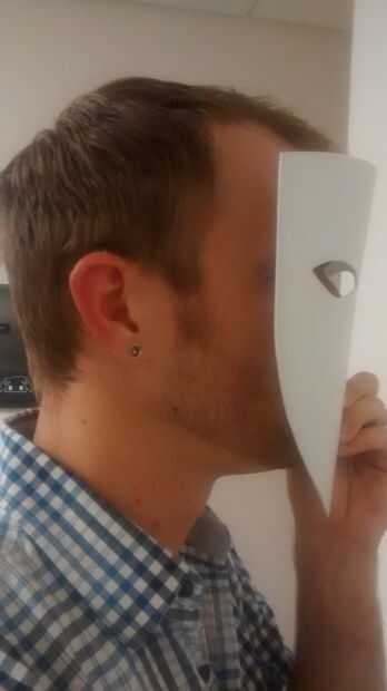 -Una vez que está lo suficientemente caliente como para que es tipo de "floppy" usted necesitará sostener firmemente contra una forma de algún tipo hasta que se enfríe. Usé una lata grande de café porque la curva fue sobre el derecho de mi cara. En retrospectiva me gustaría algo un poco más había utilizado ya el plástico acabó perdiendo un poco de su curva durante el proceso de pintura y siento que si había "más curvado" la forma final hubiera sido más de mi agrado. De cualquier manera todavía terminó bien.