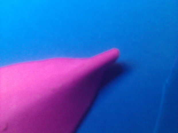 opcional: en la línea de centro hacen un valle cortado esto es donde cortar una "V" después el pegamento dentro del valle y pellizcar ligeramente las orejas.