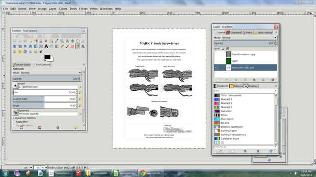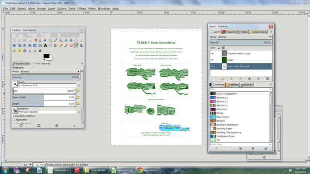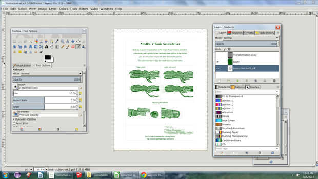 Para ello abrí el pdf en gimp y agrega una capa de pantalla en la parte superior en verde.
