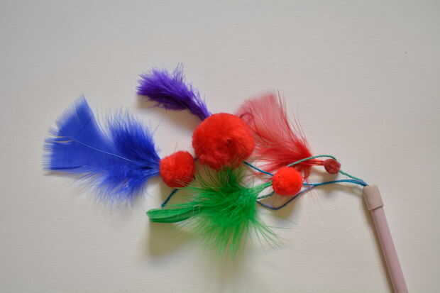 gatos les encanta estar entretenidos y les encanta plumas. Pero el factor de garra lo hace peligroso para simplemente sostener una pluma delante de un gato.La solución es separarse del filo de la kitty poniendo la pluma o plumas, sobre una cuerda en