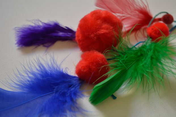 Plumas. Si tuvieras un gato de juguete con plumas y su gato no todos ellos ha comido aún, utilizarlas en lugar de comprar nuevos.