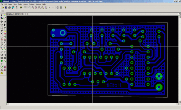 Haz clic en el botón 'Aceptar' y verá la imagen azul y verde de la capa inferior de cobre con pads y vias.