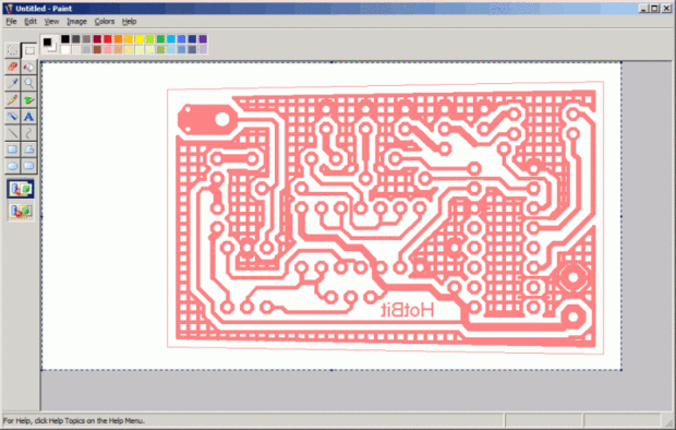 Ahora escriba Control + V o ve a Edición -> Pegar para pegar la imagen del tablero de a espacio de trabajo de MSpaint. El espacio de trabajo ahora se cambia el tamaño al tamaño de la imagen de la Junta.