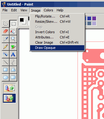 Ahora, todavía en MSpaint, ir al menú imagen y desmarque la opción dibujar opaco.