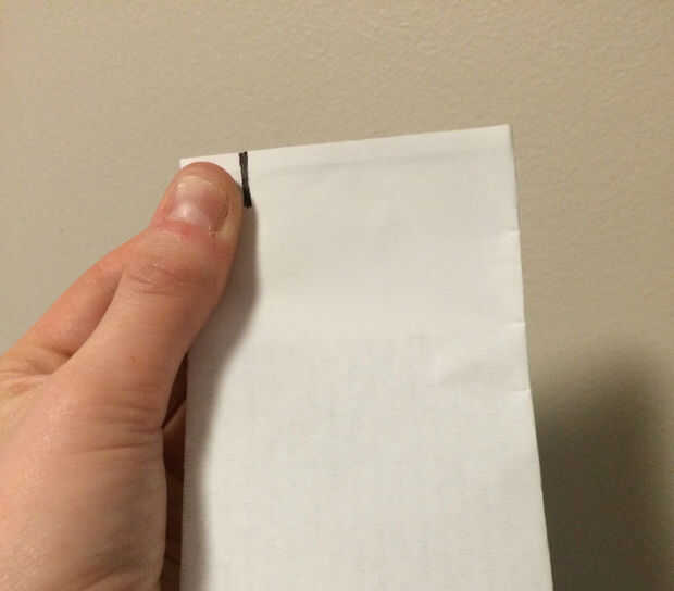 • Doblar un rasguño pedazo de papel a ese ancho.