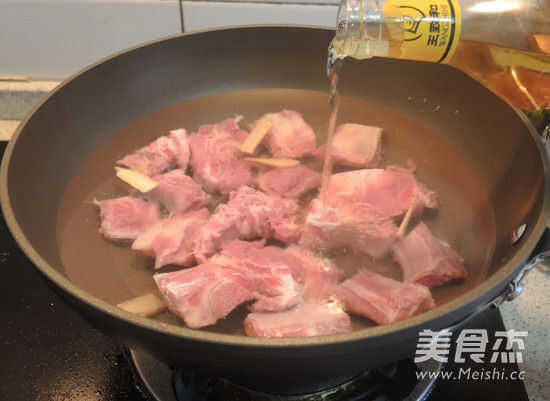 Ponga hervir las costillas en olla con agua fría hasta que el agua hervida, luego, vierta el agua.