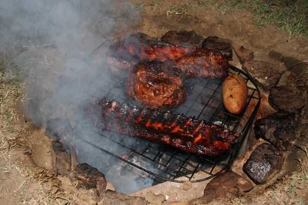Después de estar en el fuego por una hora, Compruebe la cocción de la carne. Dependiendo del peso de la carne y el calor de su hoyo, puede necesitar estar en el fuego durante 1-4 horas. Verifique periódicamente en él.