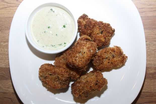 Una vez que las costillas son empanadas cuidadosamente colocarlos en el aceite y freír hasta marrón de oro en todos lado. Colocarlos en una bandeja de hoja y en el horno durante unos 15-20 minutos.