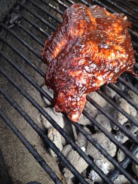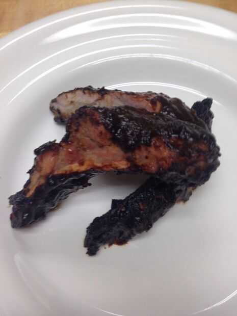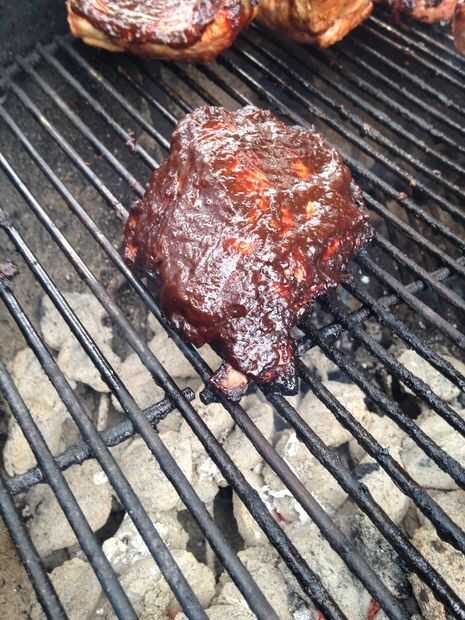 1. cuando hayan terminado las costillas, cubrir las costillas con el Chocolate - Chile Ancho salsa y mover las costillas encima de los carbones