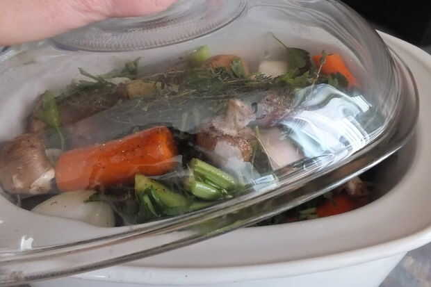 Nota: puede ser hecho la noche anterior entonces colocó en el forro de crockpot y encendido.