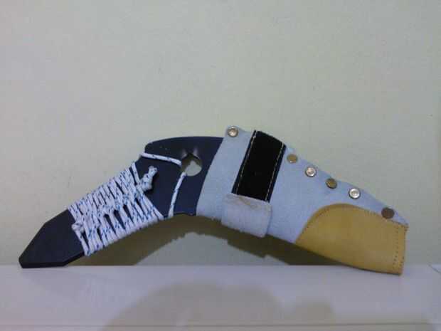 Utilicé las herramientas ordinarias del comercio. La hoja, una amoladora, algunos archivos, pasadores de cuero, 5 pies de paracord, algunas de cuero y un montón de codo grasa :)).