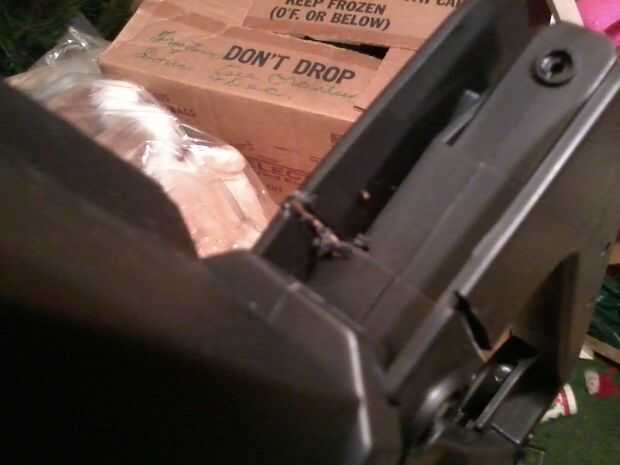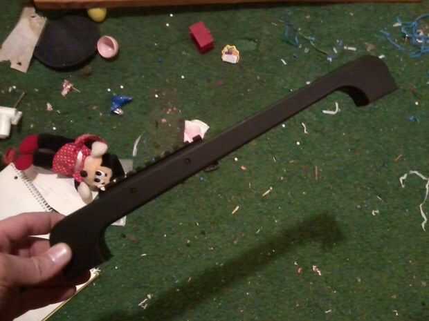 Así, en primer lugar, cortar el gigante ferroviario/asa de transporte. Corto aquí. Solía el pequeño saliente en el cuadro guía de mi corte. Fue arbitrario en el tiempo, pero al final, la altura es importante porque es donde pienso montar mi carril para los lugares de interés. Básicamente, usted quiere tan alto como puedas, así que tienes suficiente material para trabajar con, pero quieres baja para que los lugares de interés están más cercanos del cañón. Es un problema de equilibrio que depende de donde estés cómodo con tener sus monumentos situados. Cuando usted está cortando, cuidado con los tornillos utilizados para sujetar las vistas de hierro viejo en. Intente quitar todos los tornillos que serán en la forma de tu corte. El menos metal en su camino, mejor.