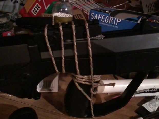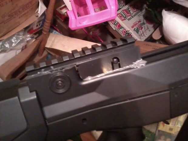 Después de asegurarse de que el ferrocarril era un buen ajuste, he cubierto en JB y equipadas para el arma. Después usando algunos paracord para asegurarse de que tenía la presión por el bono y no ir a ningún lado, solía mi palillo llene adentro cualquier boquete que vi. Esto se asegurará de que sus miras no caigan en una batalla (sí, eso sucedió. That's por qué no usar ese tipo de pegamento más).