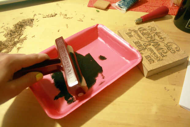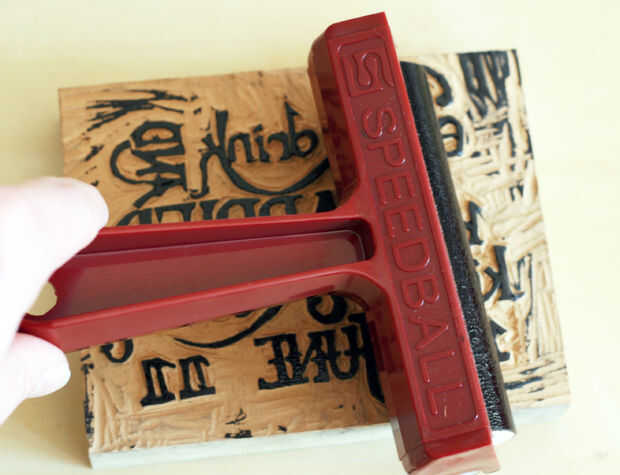 Use el rodillo para enrollar la tinta sobre la cara del sello.