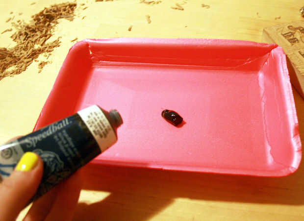 Puedes ver donde presiona demasiado con mi rodillo o no tallar de la cuadra y algunos bordes extras consiguieran entintados. Traté de limpiar lejos antes de la impresión.