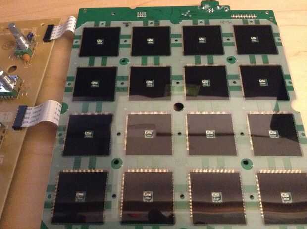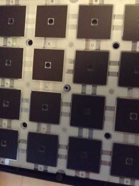 Después de quitar los componentes internos tienes algo membrane-ish con un montón de cuadrados en él. Simplemente levante hacia arriba y coloque el lado que está hacia arriba, hacia abajo sobre el tablero que hacia afuera. Los cuadrados negros brillantes deben estar hacia arriba. (si vas a usar el MPD y las pastillas no funcionan los medios usted no voltear esto correctamente)