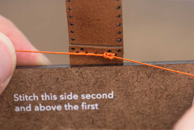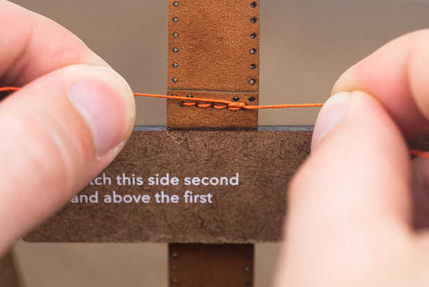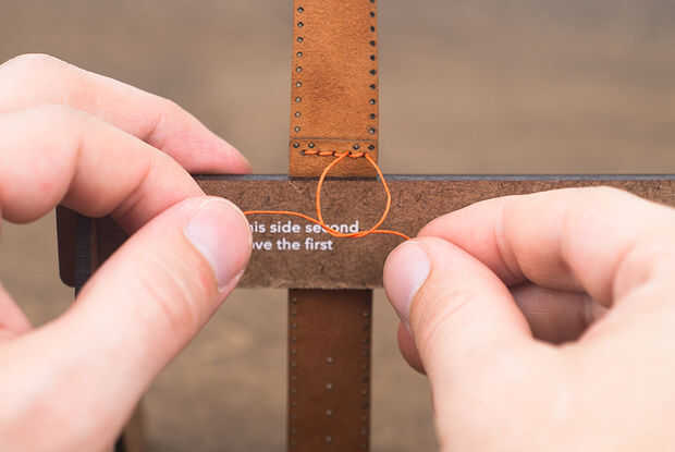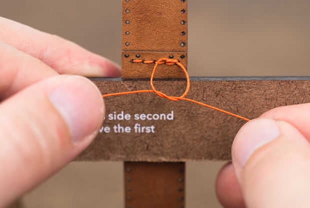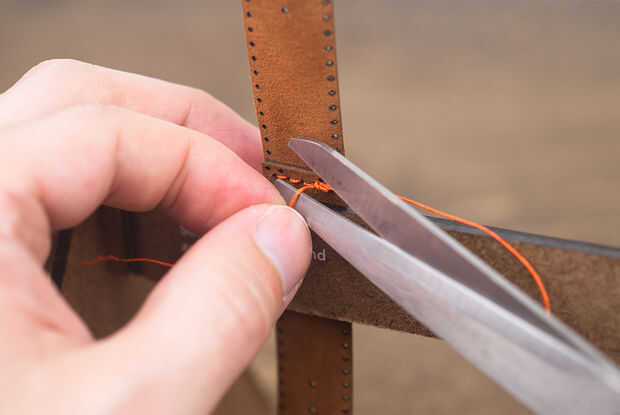 Tomar los dos hilos y hacer un nudo cuadrado acabado de la costura.