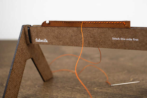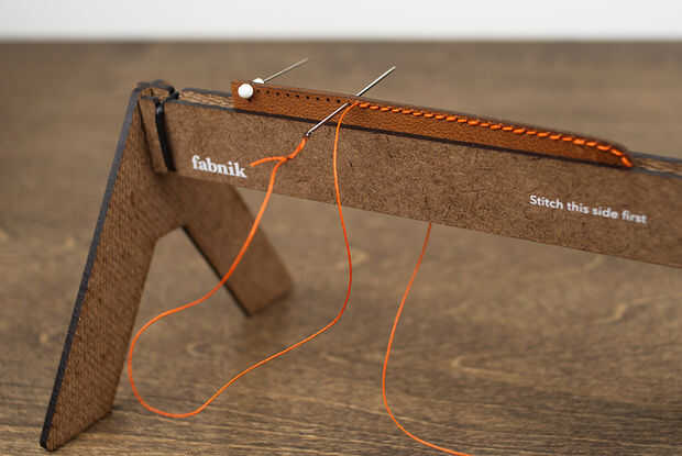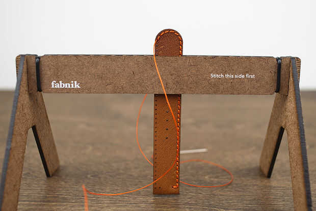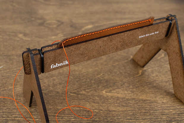 Continuar la puntada de silla de montar a lo largo de la costura de la banda inferior hasta llegar a la parada de otros. En la parada de la puntada hacia abajo, pero no vuelve todavía las puntadas para una cerradura.