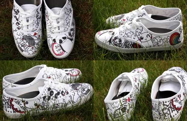 Las líneas se dibujan con Faber Castell Pitt artista plumas [le costó producir líneas de fácil y sólidas. Tinta se adelantó ligeramente al primero, tuvo que recorrer varias veces, y la pluma del cepillo sangró a través de la lona] usar un marcador para tela negro antes, que era más fácil de manejar, pero otra vez he encontrado que la tinta vino en ligeramente y demasiado retroceso.