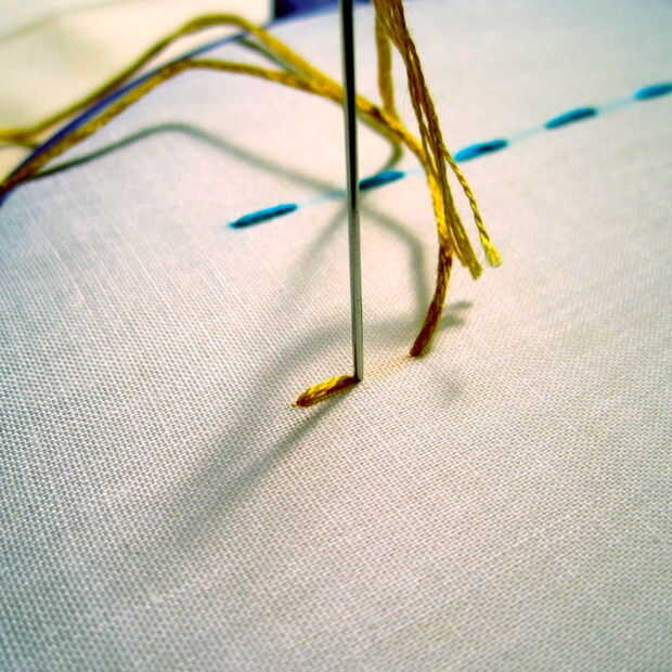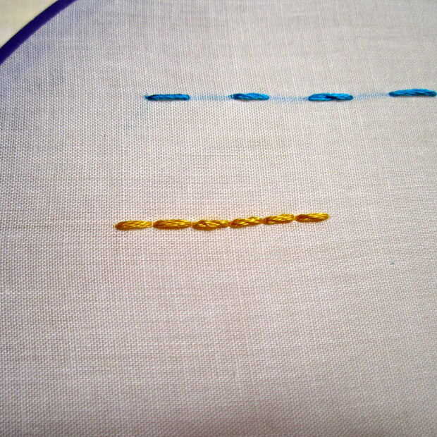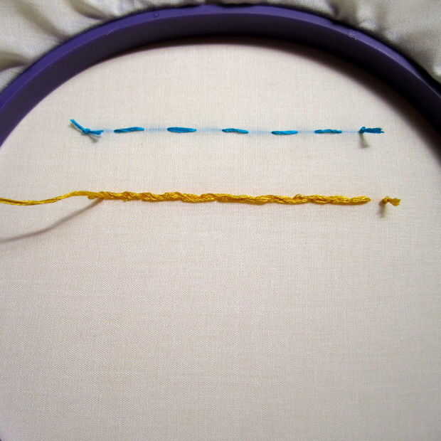 Al coser, tiendo a mantener mis puntadas espaldas estrecha, pero tienen un pequeño espacio entre ellos. Para bordado, tiendo a llevar mi aguja a la parte delantera de la tela y hacia abajo a través del orificio que solía pasar la aguja hacia atrás para hacerlos extremadamente juntas. :)