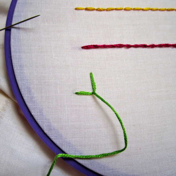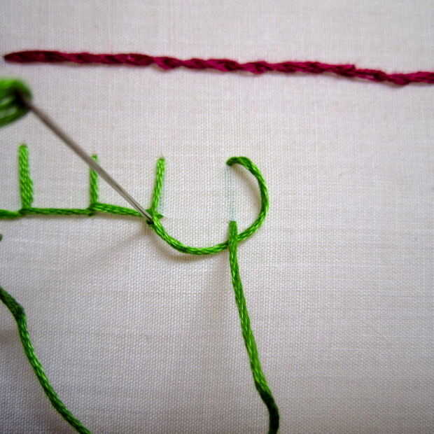 - para finalizar, simplemente tome la aguja de abajo a la derecha al lado de la curva de la última puntada. Esto asegurará la puntada.