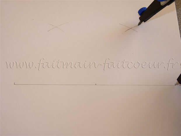 Con el compás a 6 cm, traza cruces colocando los clavos en las 3 marcas (0cm - 6cm-12 cm).