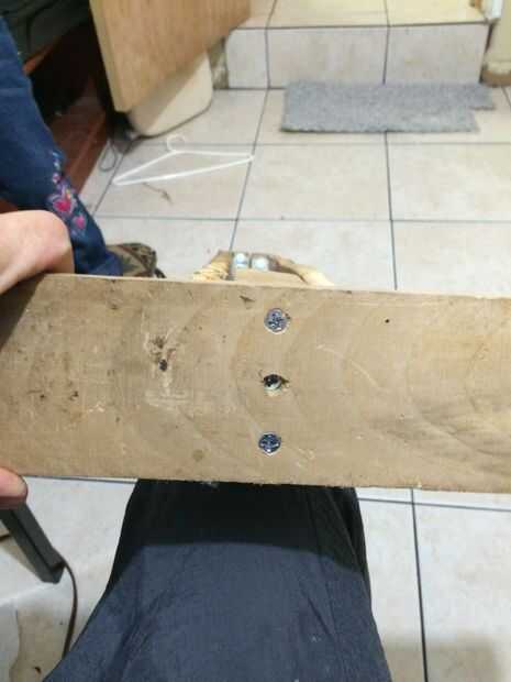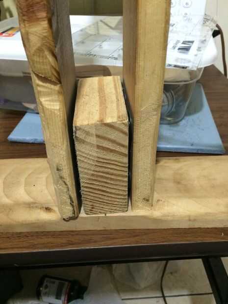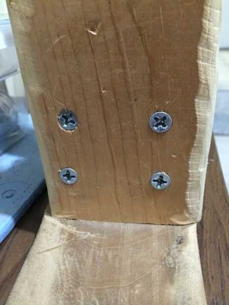 Luego hice agujeros en las columnas apropiadas con el bloque de centro y atornillar los montantes en el bloque central con mis tornillos en el lado derecho ligeramente compensado de los tornillos en el lado izquierdo por lo que no pudieran conectar dentro del bloque de centro.