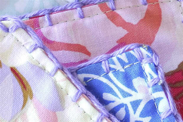 a) utilizando la parte superior coser la costura como guía, puntada de manta a lo largo de todos los lados a intervalos de 1 cm.