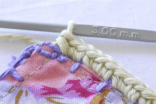 c) Deslice la puntada (Sl st) para unirse a 2 de la fila.
