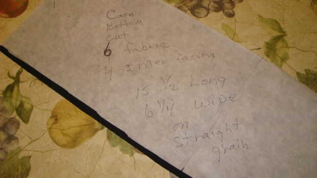 Hierro todas las piezas de entretela al revés de las piezas de la caja/bolsa de llave, los lados, extremos, inferior y dos bolsillos.  La tela de la guarnición no necesita interfaz.