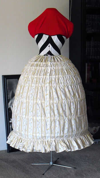 para el traje de Belle, la parte superior sólo se modifica de un patrón (simplicidad 4092). La falda era por encargo. Consiste principalmente de un faldón superior e inferior. La falda inferior es plisada y la falda superior es acanalada para revelar
