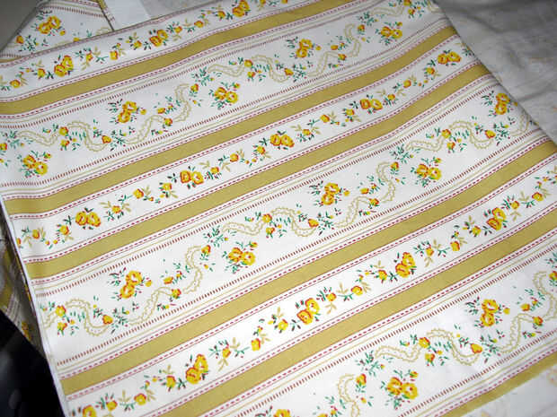 Usé un tictac de almohada de algodón rayas recogido en JoAnns. Con un cupón de vino a unos 3 dólares por yarda. Es más fino y tejido más apretado que hace tictac regular, y me encanta a la combinación de flores y rayas!