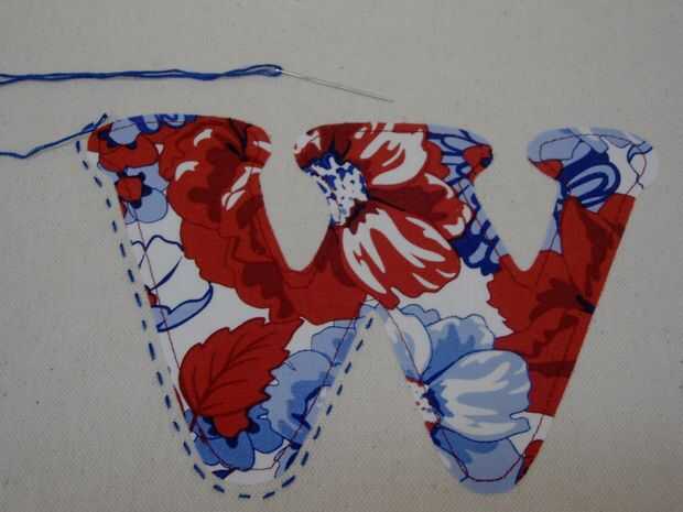 Usando todos los seis filamentos de la seda del bordado de la puntada todo el camino alrededor de la letra aproximadamente 1/8" desde el borde exterior.