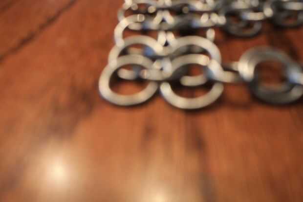 Esto requiere paciencia y tiempo de usted. Asegúrese de que el anillo de la cadena apunta en la misma dirección antes de encuadernarlos. Los conjuntos de los dos deben estar enfrentados de direcciones de los anillos de centro. Mira de cerca la imagen de arriba. Esto debe hacerse correctamente, su cota de malla se verá como un lío enredado y lo hará no ligh derecho. Incluso no se verá como cota de malla. El anillo de Unión se verá como el anillo central en dirección.